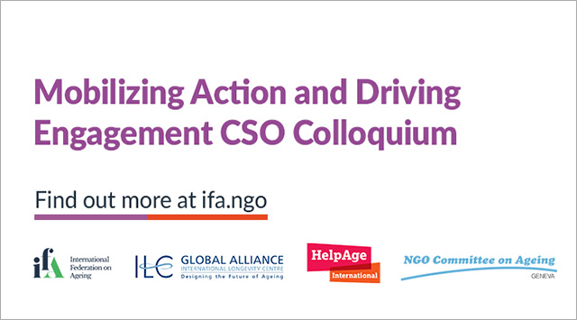 UN Decade of Healthy Ageing (2021-2030) to mobilize and align action towards successful engagement of organizations within the Decade and beyond. It was co-hosted by the International Federation on Ageing (IFA); the International Longevity Centre Global Alliance (ILC Global Alliance); HelpAge International; and the NGO Committee on Ageing, Geneva.